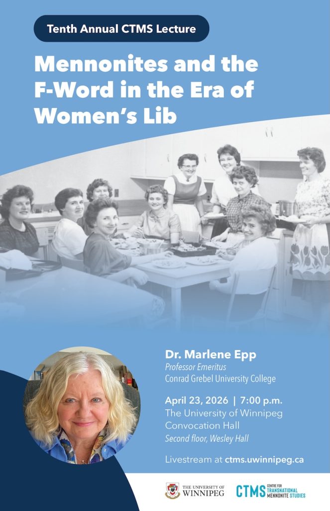 Dr. Marlene Epp, professor emeritus of history and peace and conflict studies at Conrad Grebel University College, will deliver our tenth annual CTMS Lecture, on Mennonite engagements with feminism in the 1970s.